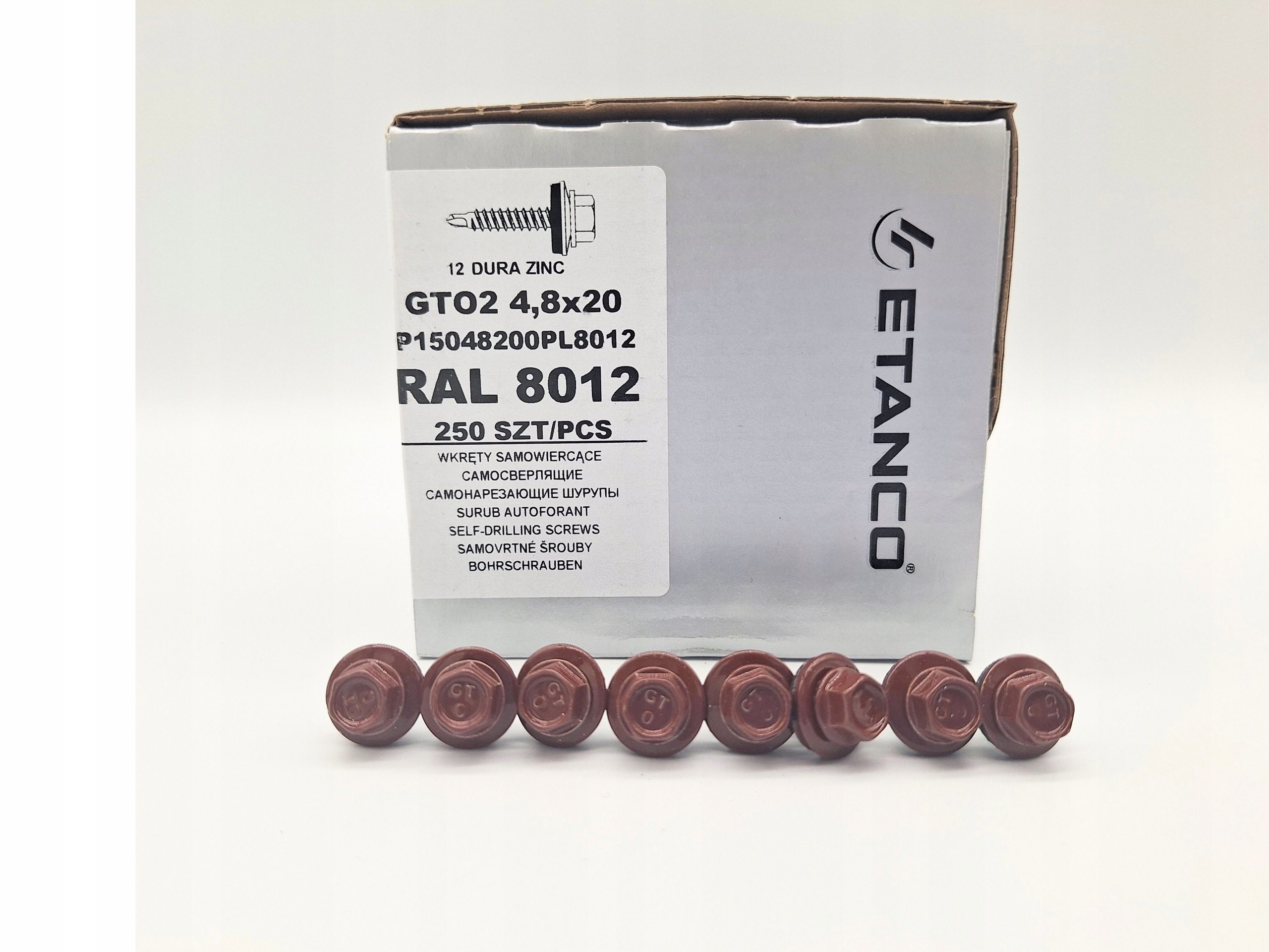 WKRĘTY FARMERSKIE do blachy, zszywka 4,8x20mm, RAL 8012 250szt. Etanco