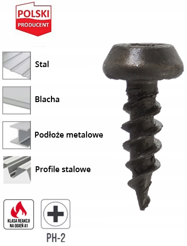 - Łeb stożkowy z gniazdem PH-2 - Łeb stożkowy zapewnia odpowiednie jego zagłębienie w mocowanym elemencie. Jedno z najbardziej powszechnych gniazd, umożliwia montaż przy użyciu końcówek z ogranicznikiem.