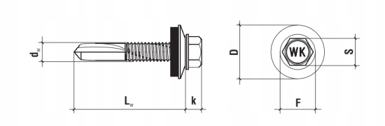 - Cechowany łeb wkręta - Cecha WK na łbie wkręta pozwala na identyfikacje firmy Wkręt-met jako producenta oraz łatwe rozpoznanie produktu