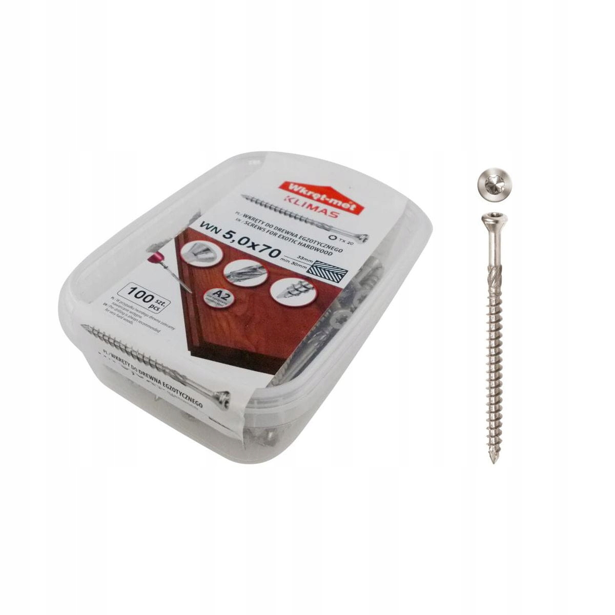 WKRĘTY TARASOWE nierdzewne, do drewna TORX A2 5 x70 mm 100szt. KLIMAS