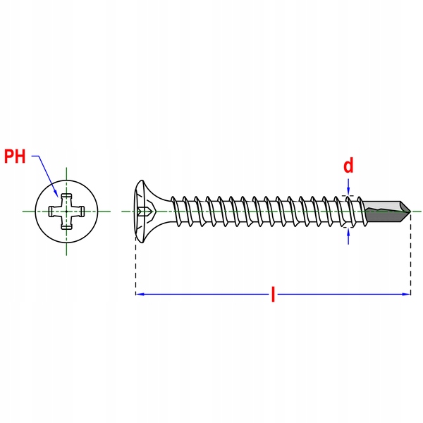 - Gwint do metalu - Budowa gwintu zapewnia skuteczne i trwałe mocowanie w powierzchni stalowej