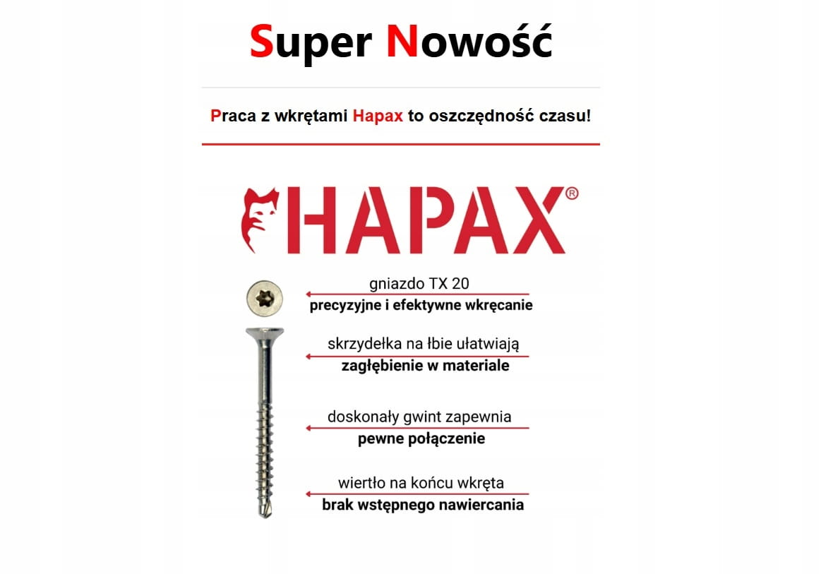 Profesjonalne wkręty samowiercące HAPAX HAMVTG – idealne do drewna i MDF!