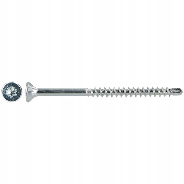 - Innowacyjna konstrukcja – specjalny kształt wierzchołka wkręta wstępnie nawierca materiał, minimalizując ryzyko jego pękania. Dzięki temu wkręcanie jest płynniejsze i wymaga mniejszej siły, co wpływa na wygodę pracy.