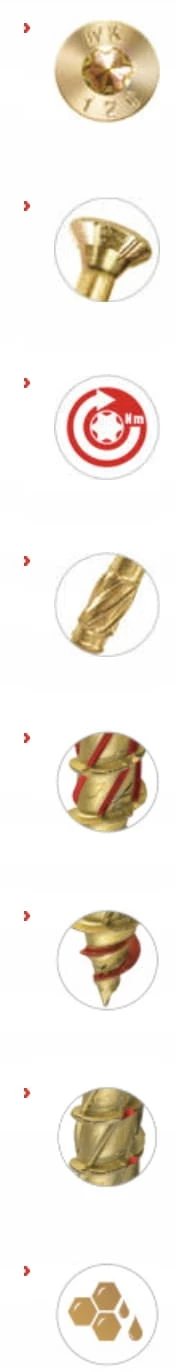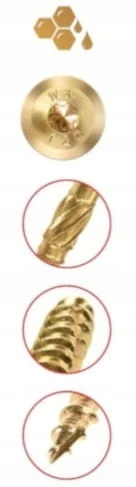 - Karby tnące - Specjalne karby tnące na gwincie przecinają włókna struktury drewna podczas wkręcania.