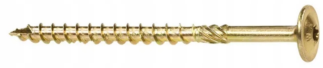 Wkręt konstrukcyjny z łbem podkładkowym i gniazdem Torx do połączeń konstrukcyjnych elementów drewnianych m,in, litych, klejonych i płyt drewnopochodnych.