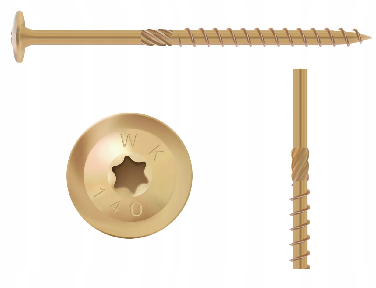 Wkręt konstrukcyjny wykonany ze stali niskowęglowej ocynkowanej galwanicznie w kolorze żółtym. Wkręt wyposażony jest w łeb podkładkowy z gniazdem TX pokryty specjalną powłoką woskową nanoszoną podczas procesu produkcji. Dzięki temu montaż jest szybszy, łatwiejszy i ogranicza zużycie energii.