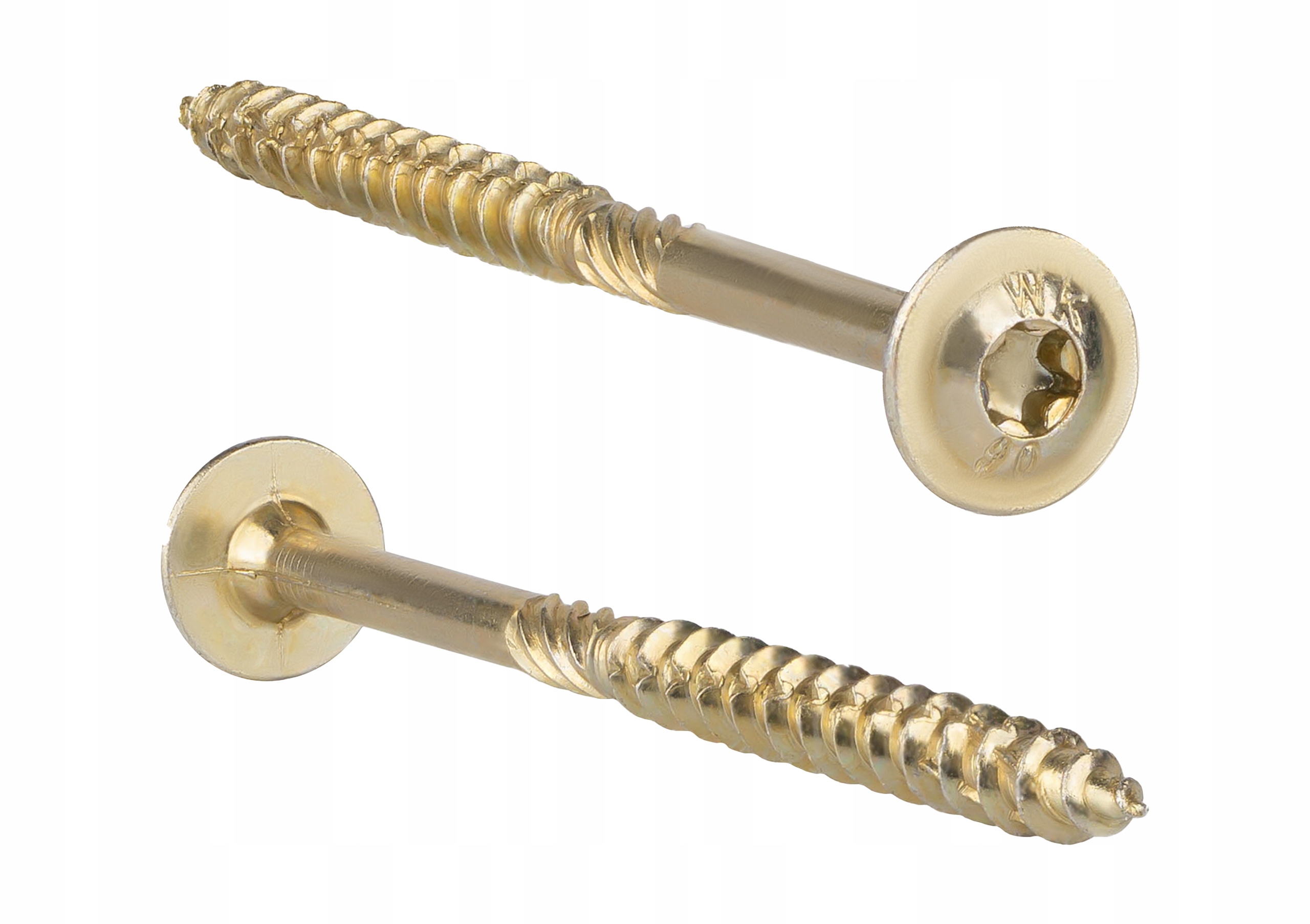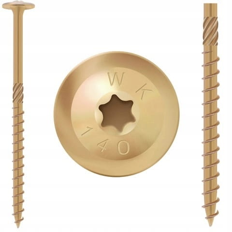 Wkręty konstrukcyjne wykonane ze stali ocynkowanej posiadają łeb podkładkowy z gniazdem typu TX oraz specjalną końcówkę wiercącą przeznaczoną do połączeń w konstrukcjach drewnianych.