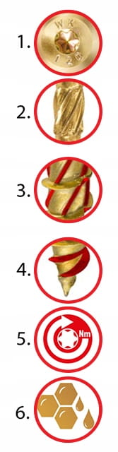 Dzięki specjalnej powłoce woskowej nanoszonej podczas procesu produkcji, znacząco zmniejszył się moment wkręcania. Dzięki temu montaż jest szybszy, łatwiejszy i ogranicza zużycie energii w narzędziach zasilanych akumulatorem.