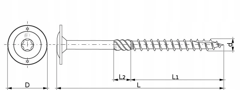 Wkręty do konstrukcji drewnianych z łbem podkładkowym, gniazdo TX