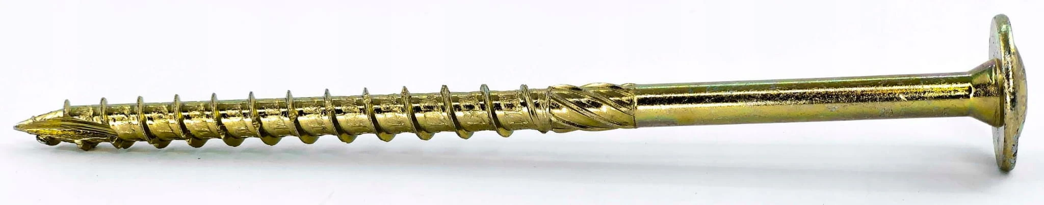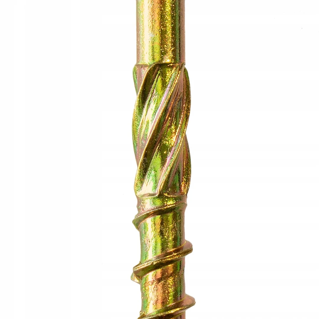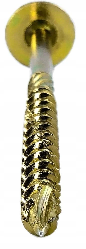 - Podwójny gwint: dodatkowe zwoje na szpicu wkręta mają ułatwić początkowy proces wkręcania poprzez szybsze "złapanie" drewna przy mniejszej sile docisku. Jest to szczególnie istotne w przypadku połączeń, gdzie dociśnięcie wkręta jest utrudnione (np. wymuszona pozycja wkręcania)