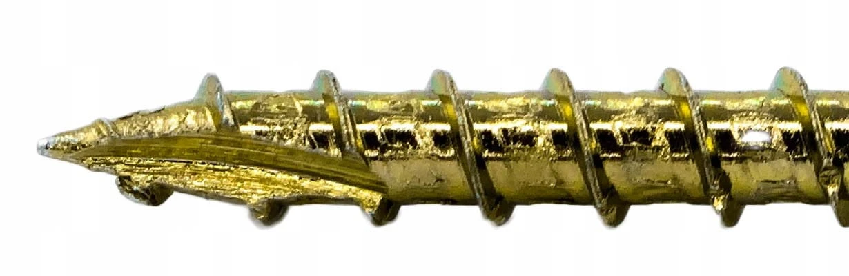 - Karby tnące: specjalne karby tnące na gwincie przecinają włókna struktury drewna podczas wkręcania.