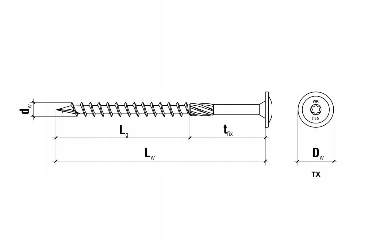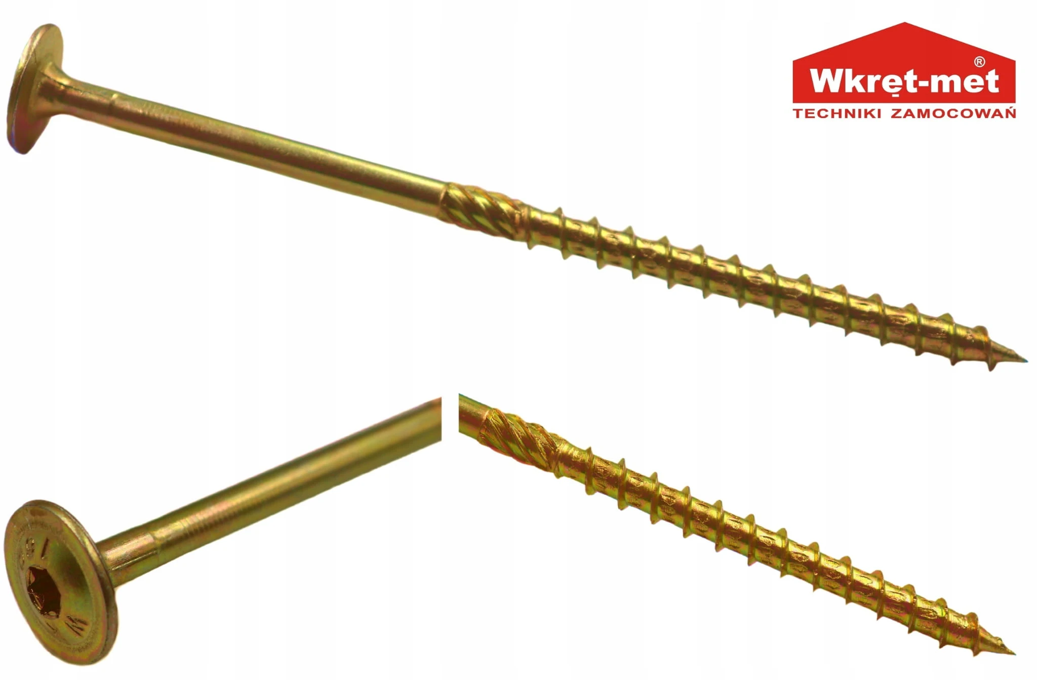 Wkręt ciesielskie konstrukcyjne renomowanej firmy Wkręt-Met z łbem podkładkowym talerzowym i gniazdem TORX do połączeń konstrukcyjnych elementów drewnianych m.in. do drewna litego i płyt drewnopochodnych, kontrłat i łat, listew i drewnianych elementów wykończeniowych.