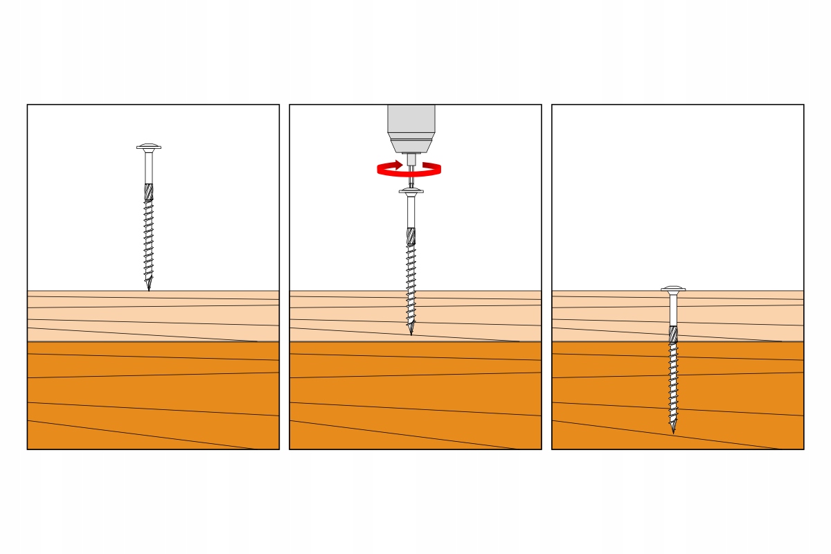 Karby tnące - Specjalne karby tnące na gwincie przecinają włókna struktury drewna podczas wkręcania.