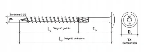 Wkręty do konstrukcji drewnianych z łbem podkładkowym, gniazdo TX
