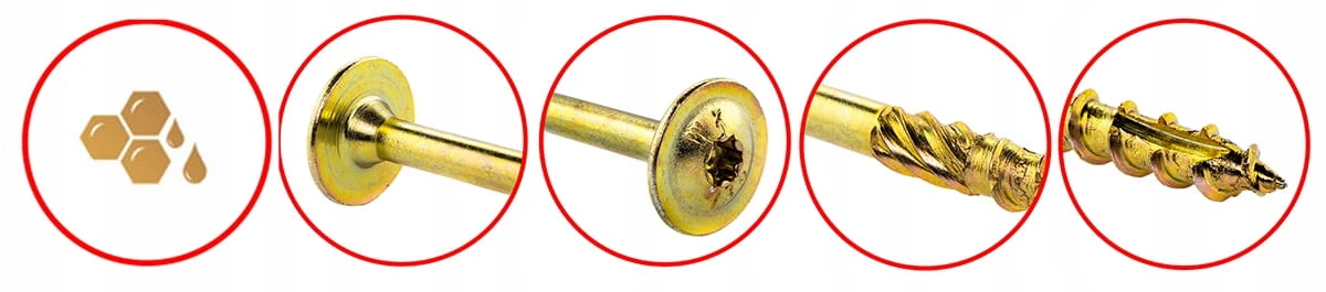 Wkręt posiada specjalne ostrze, które ułatwia rozpoczęcie wkręcania i zapobiega pękaniu drewna.
