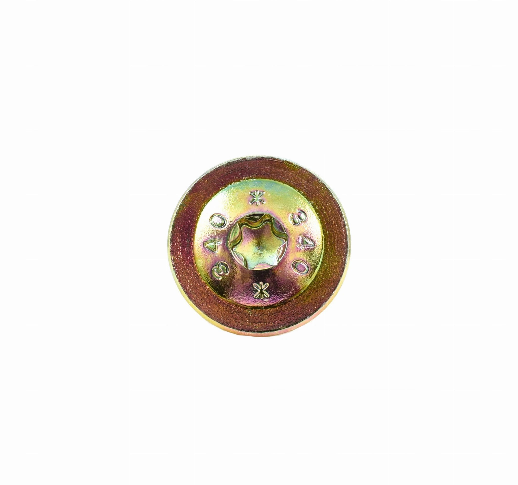Łeb podkładkowy z gniazdem TX - Zwiększa powierzchnię docisku zapewniając wysoką wytrzymałość na przeciąganie. Gniazdo TX gwarantuje optymalne przeniesienie momentu obrotowego.