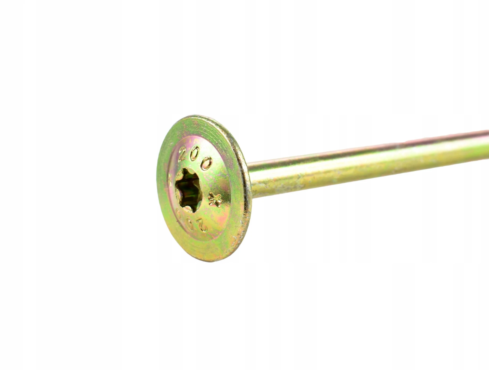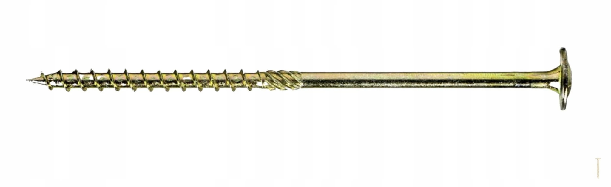 Wkręt konstrukcyjny z łbem podkładkowym i gniazdem TX do połączeń konstrukcyjnych elementów drewnianych m.in. litych, klejonych i płyt drewnopochodnych.