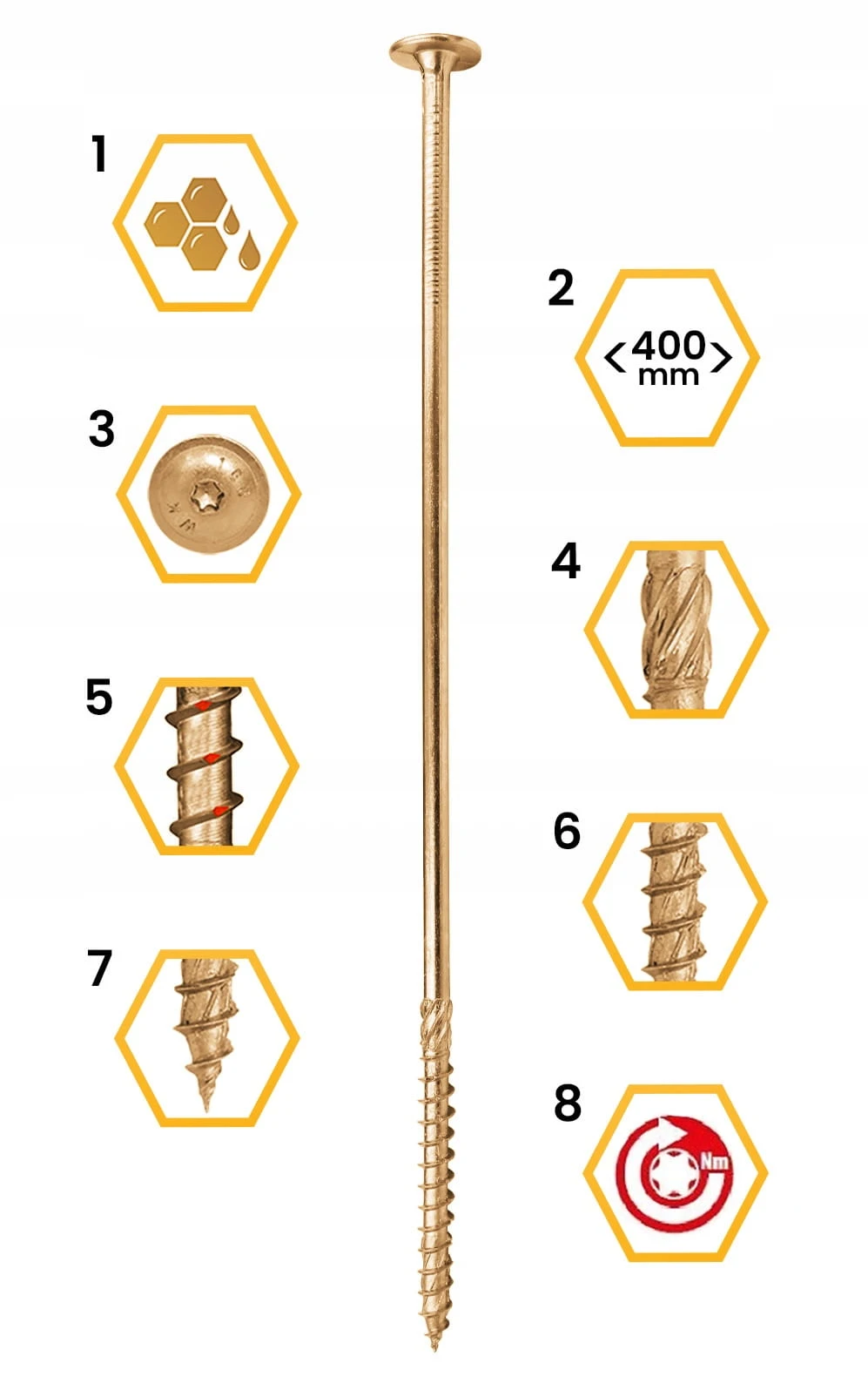 Wkręty ciesielskie 8x360 talerzowe TORX
