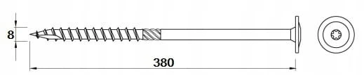 Wkręt do drewna z łbem podkładkowym i gniazdem TX 8x380 mm 50 szt.