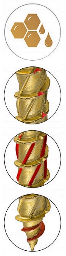 - Powłoka woskowa: specjalna powłoka woskowa nanoszona podczas procesu produkcyjnego znacząco zmniejsza moment potrzebny do wkręcania wkręta. Dzięki temu montaż jest szybszy i łatwiejszy, znacząco obniża zużycie energii co jest szczególnie istotne w narzędziach zasilanych akumulatorem.