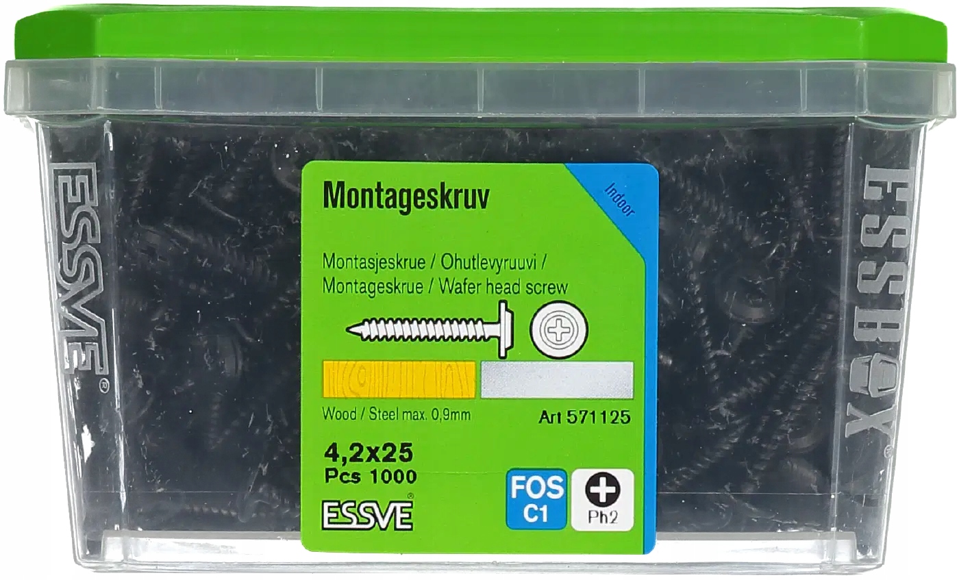 Wkręty, pchełki ESSVE 4,2x25mm montażowe do drewna, stali, ostre 1000szt.