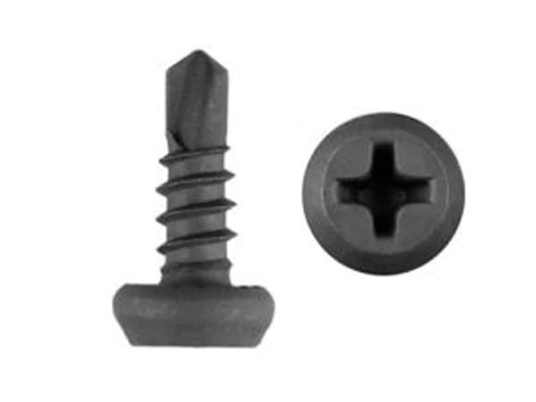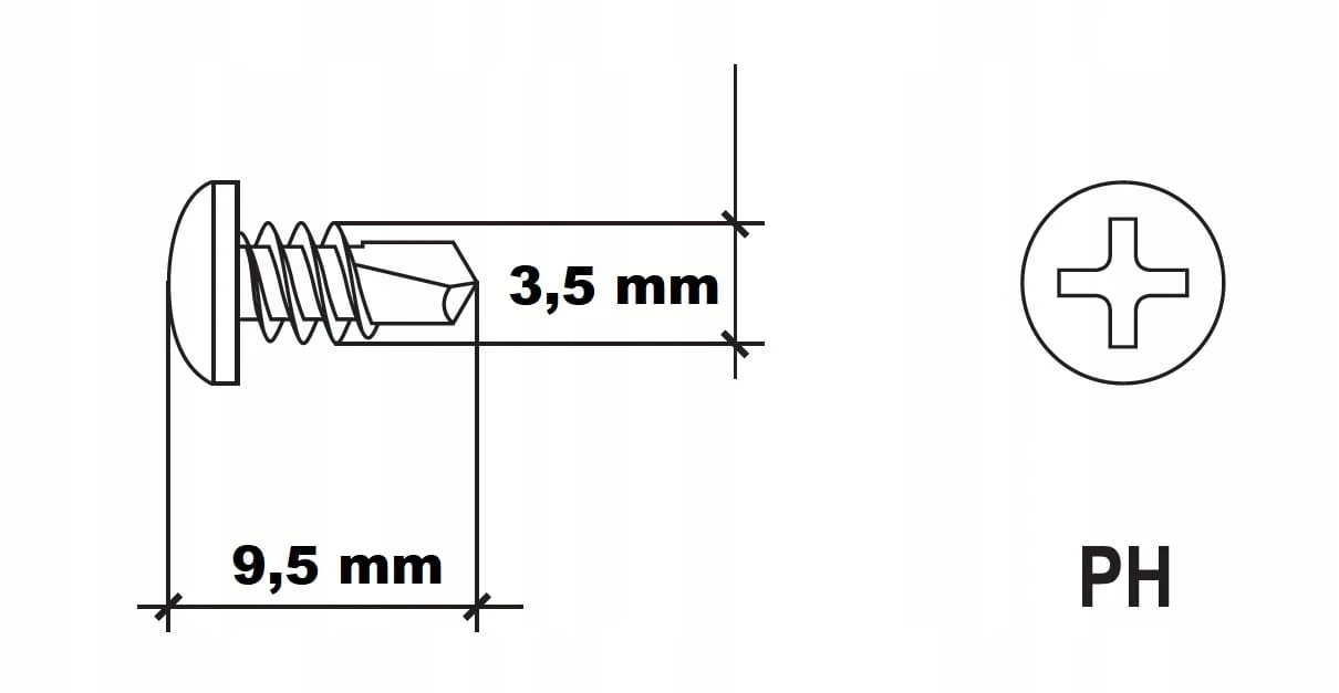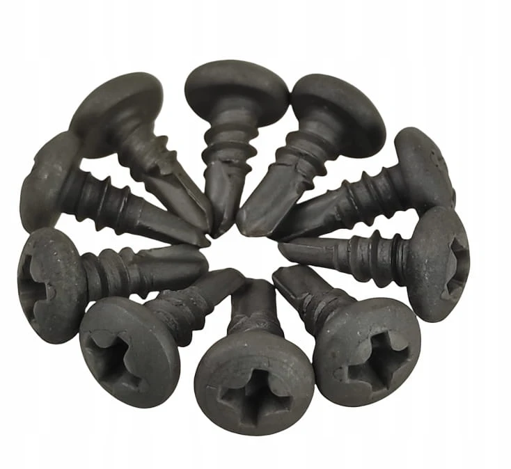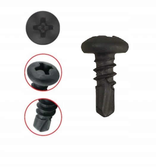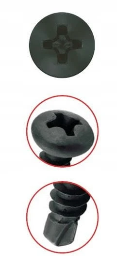 Wkręty fosfatowane samowiercące TEX TRÓJKA z łbem walcowym i nacięciem PH2. Wkręty "pchełki" fosfatowane samowiercące typu TEX do mocowania elementów stalowych o małej grubości w technologi GK, łączenie elementów mocujących typu es i esp z kształtownikami cd 60/27, wzajemne łączenie kształtowników ud, cd, u, c,