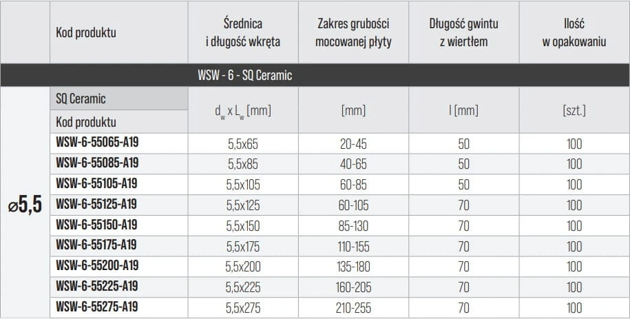 ✅ Powłoka antykorozyjna - SQ CERAMIC - wytrzymała na uszkodzenia, wielowarstwowa aluminiowo-cynkowa powłoka ceramiczna pozwala na stosowanie wkrętów w środowiskach wyższych kategorii korozyjności (C1 do C4).