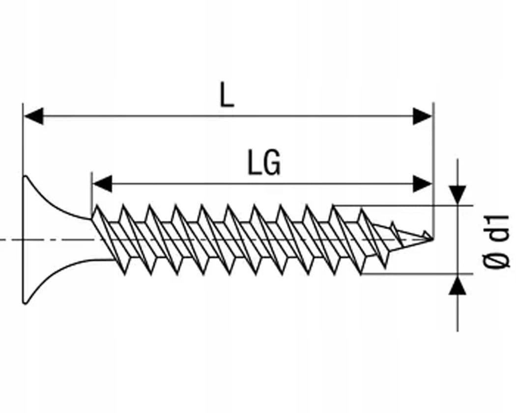 Wklęsły, trąbkowy kształt główki oferuje wystarczającą ilość powierzchni na mocne dociśnięcie płyt gipsowych do konstrukcji nośnej bez ryzyka całkowitego przebicia się przez górny karton.