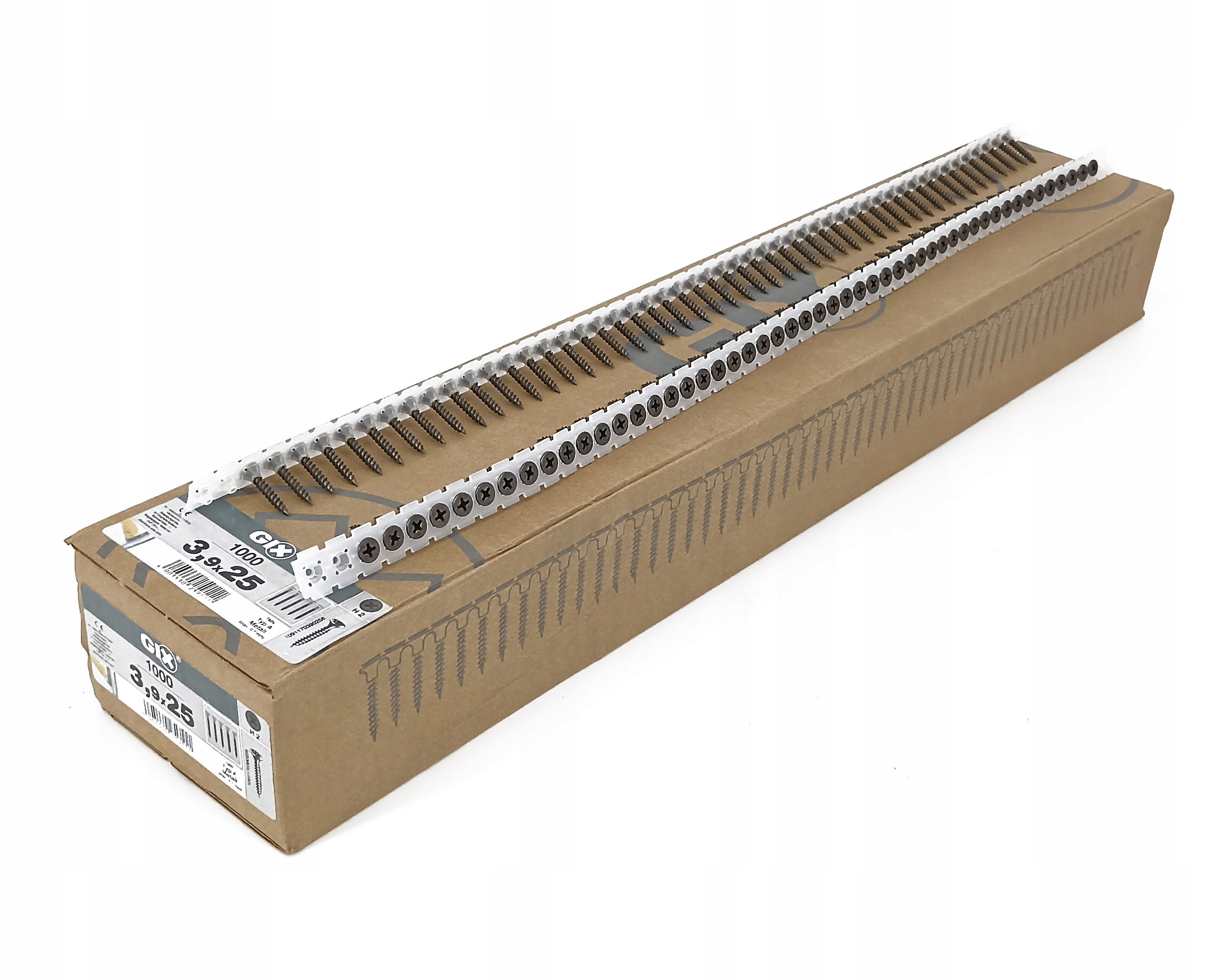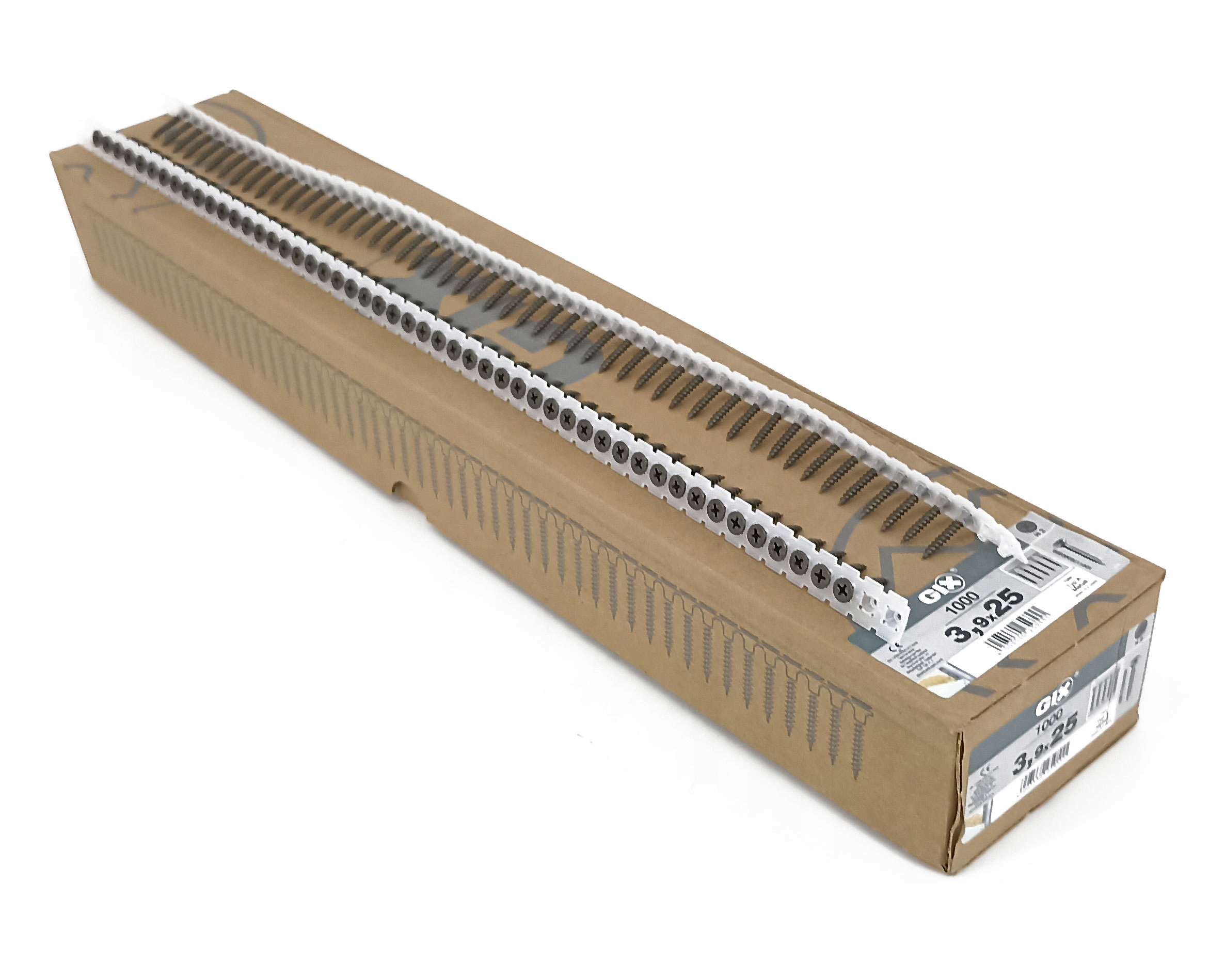 Wkręty do konstrukcji suchej zabudowy GIX fosforanowane, czarne, na taśmie 3,9x25, 1000 sztuk