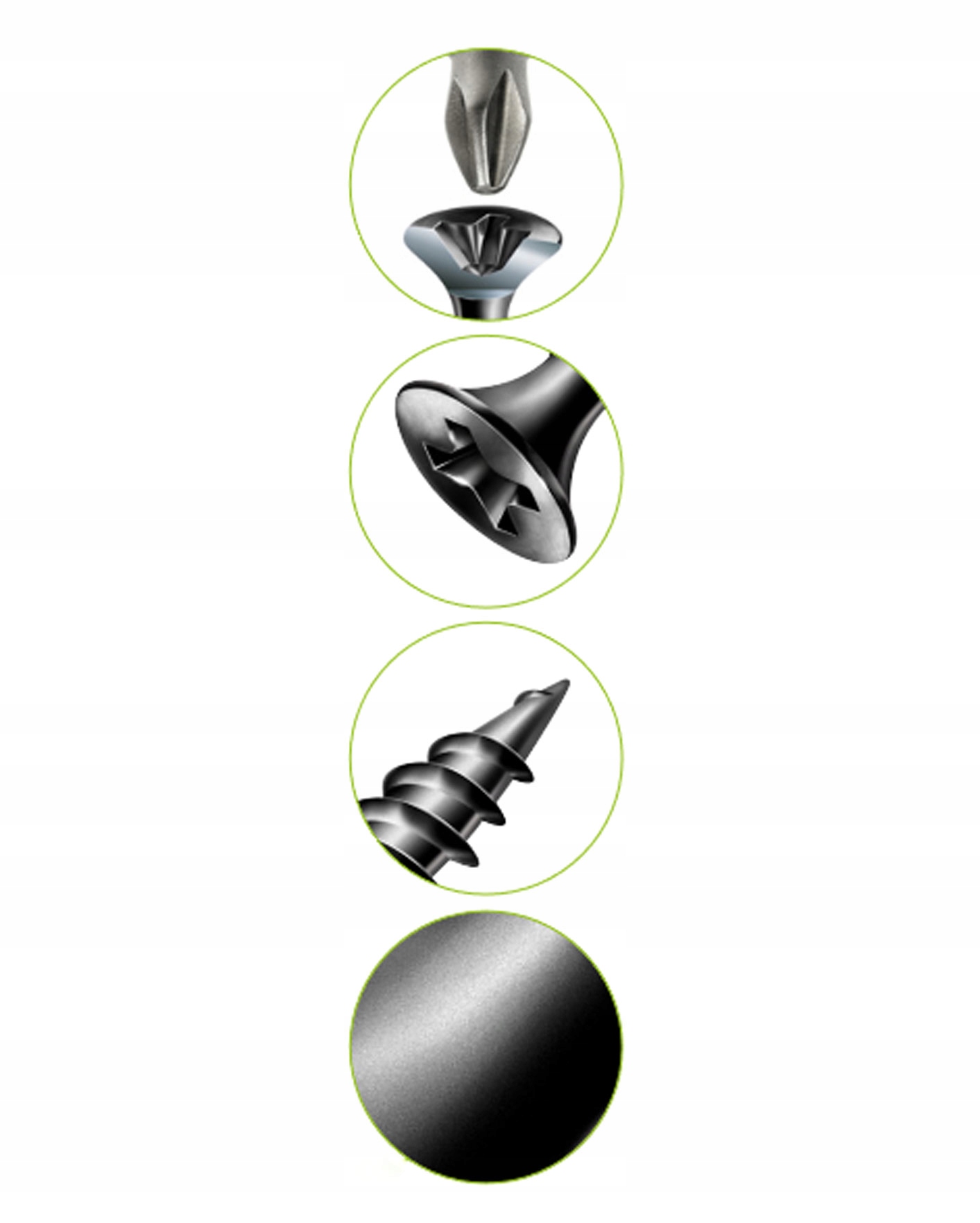 Doskonała ochrona przed korozją, nie przyciągają wilgoci, jak ma to miejsce w przypadku wkrętów cynkowanych. Powłoka zapewnia stosowanej w suchej zabudowie szpachli doskonałą przyczepność do główki wkręta.