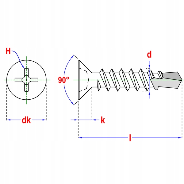 blachowkręt stalowy, łeb stożkowy, samowiercący, hartowany, ocynkowany na biało, wg DIN 7504O