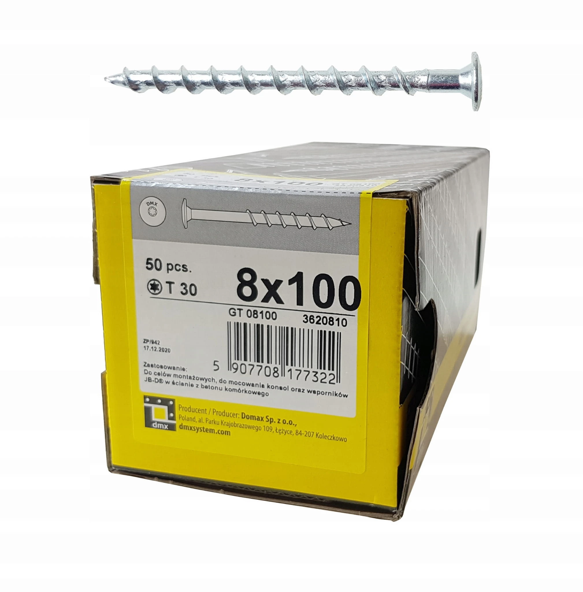Wkręty do GAZOBETONU,BETON KOMÓRKOWY,SUPOREX 8X100 TALERZOWE 50szt.GT DOMAX