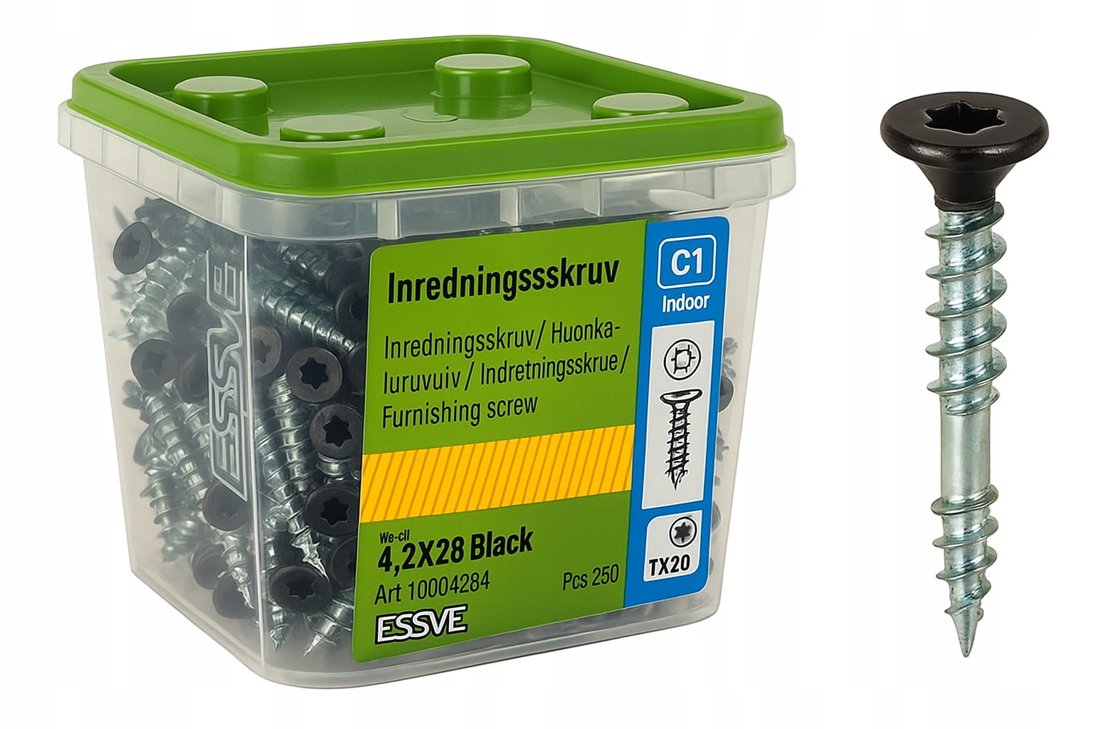 Wkręty do drewna, mebli, korpusów ESSVE 4,2x28mm CZARNY 250szt.