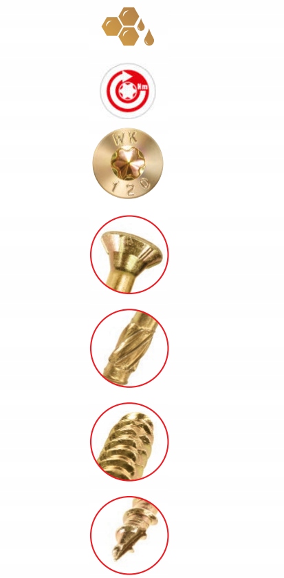 Dzięki specjalnej powłoce woskowej znacząco zmniejszyła się wartość momentu wkręcania. Dzięki temu montaż jest szybszy i łatwiejszy. Wydłuża to również czas pracy narzędzi zasilanych akumulatorem.