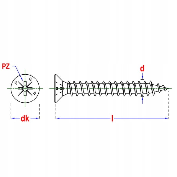 - Uniwersalny wkręt do płyty wiórowej z podwójnym łbem stożkowym – doskonałe dopasowanie do powierzchni materiału.