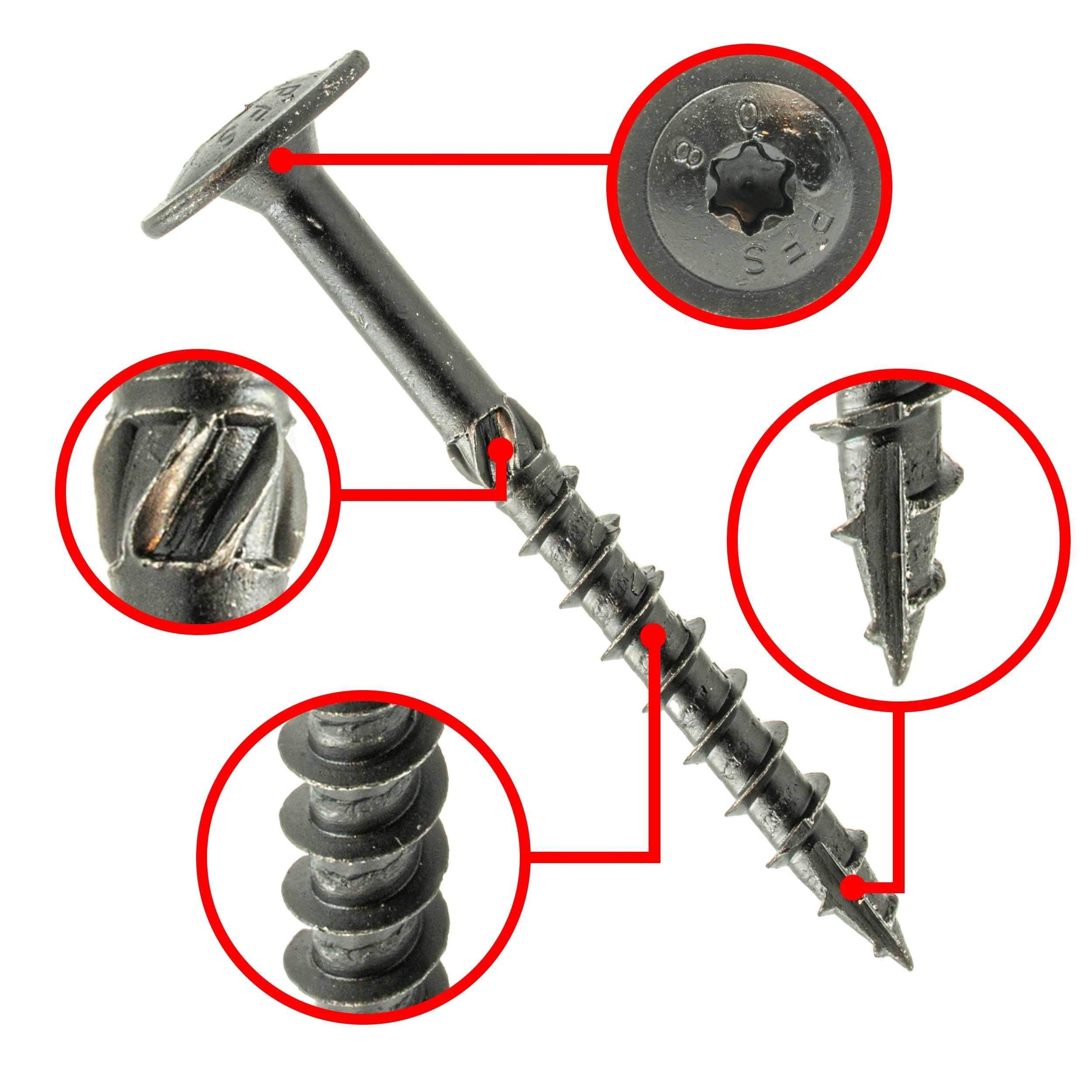 WKRĘTY DO DREWNA TALERZOWE CZARNE 8x40 + BIT - 50 szt.