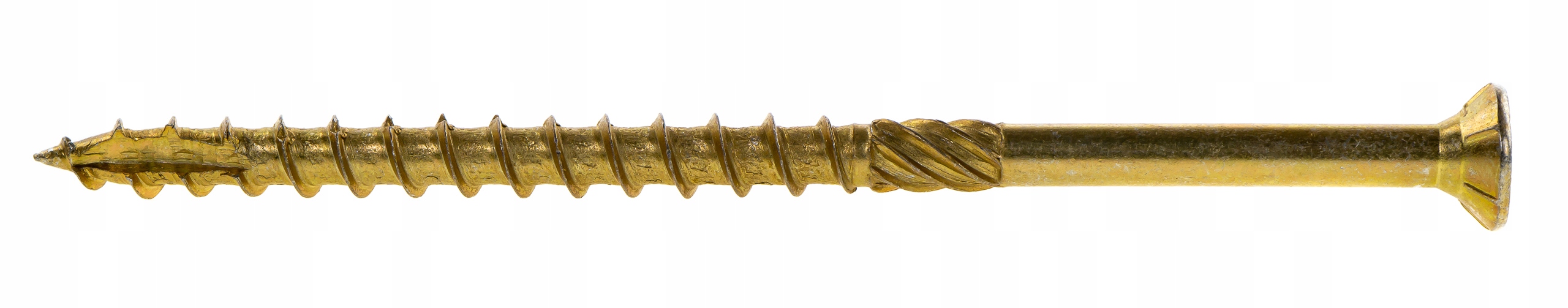 - Specjalne ostrze. Nacięcie na początku gwintu ułatwia rozpoczęcie wkręcania oraz zapobiega pękaniu drewna. Dzięki niemu wkręt nie wymaga wstępnego nawiercania.