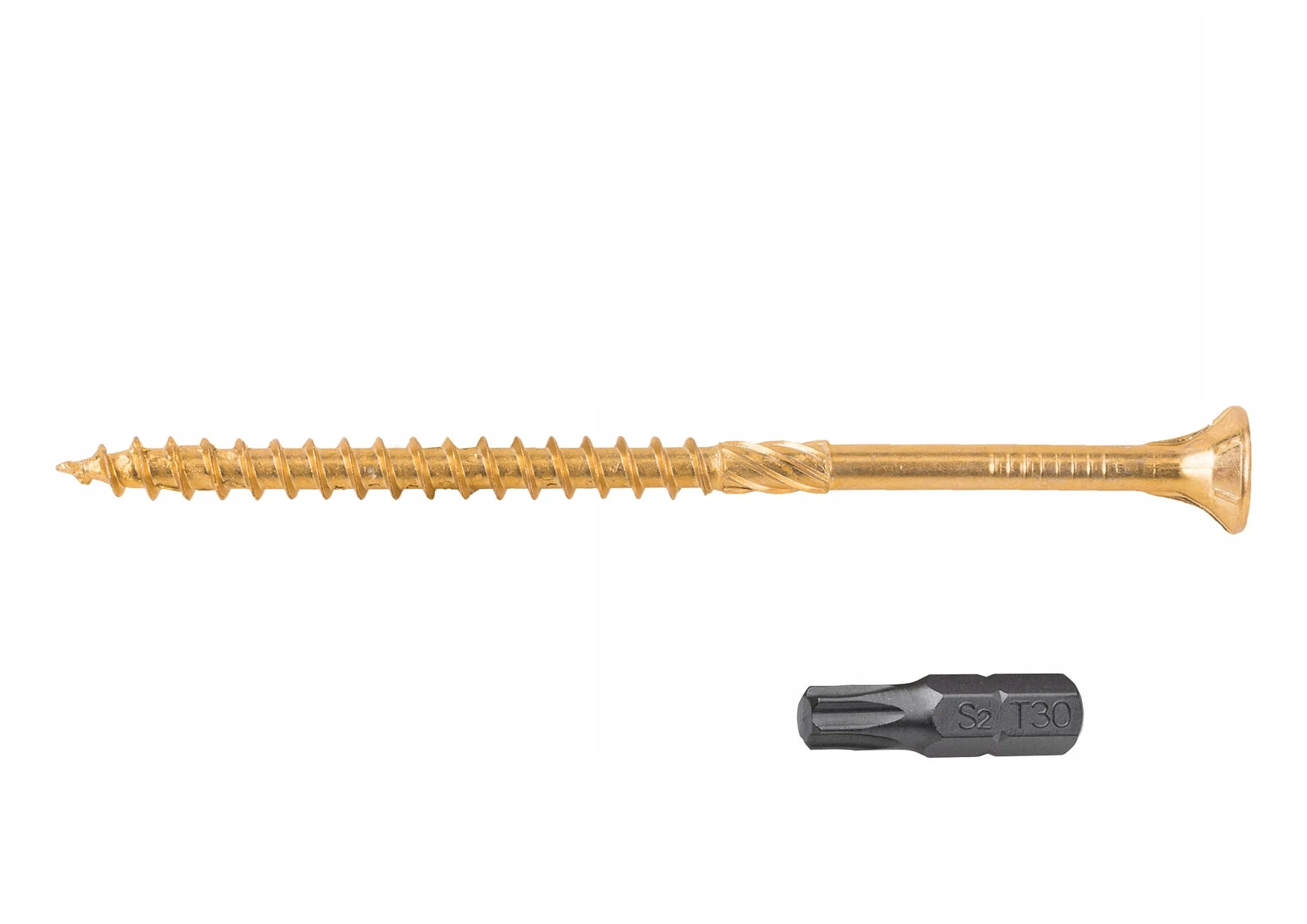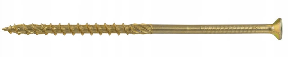- Specjalne karby tnące na gwincie przecinają włókna struktury drewna podczas wkręcania.
