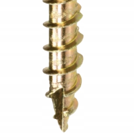 Specjalne karby tnące na gwincie przecinają włókna struktury drewna podczas wkręcania.