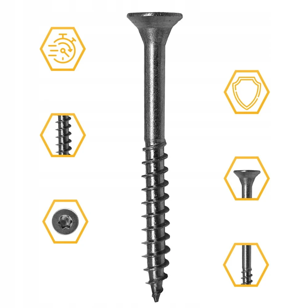 ✅ Szybki montaż - wkręty nie wymagają wstępnego nawiercania, dzięki czemu są łatwe w montażu