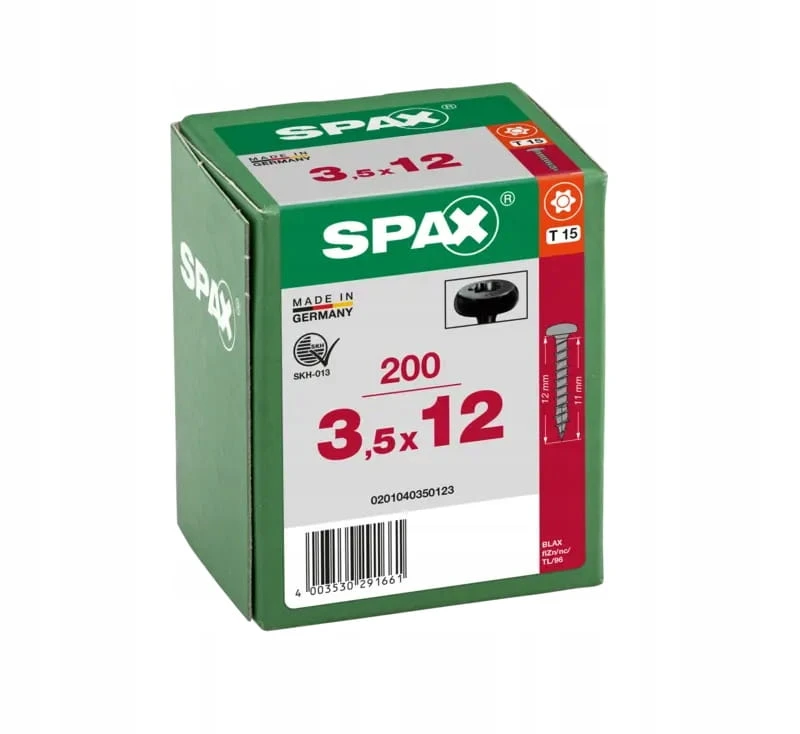 Wkręty do drewna SPAX 3,5x12mm,pełny gwint, łeb talerzowy, czarne 200szt.