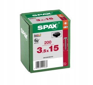 Wkręty do drewna SPAX 3,5x15mm,pełny gwint, łeb talerzowy, czarne 200szt.