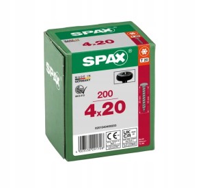 Wkręty do drewna SPAX 4x20mm,pełny gwint, łeb talerzowy, czarne 200szt.
