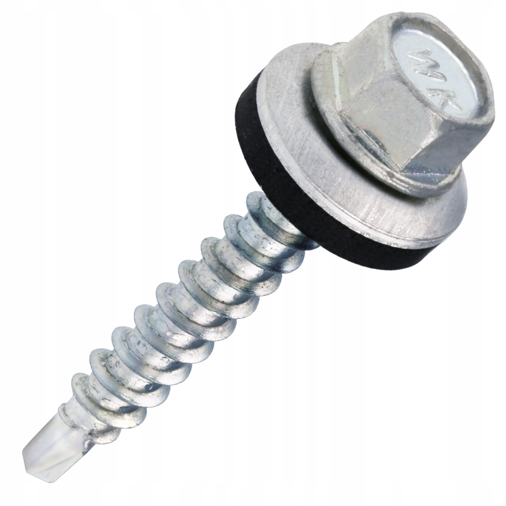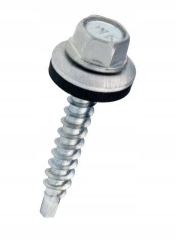 Wkręt samowiercący z podkładką EPDM wykonany w powłoce cynkowej, do mocowania blach, blachodachówki i obróbek blacharskich do podłoża drewnianego. Wkręt typu farmer.