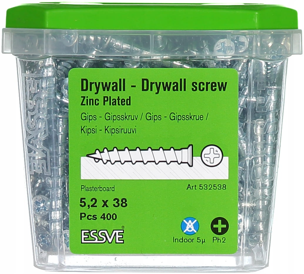 Wkręty do łączenia płyt G-K 5,2×38 ocynk ESSVE 400 szt. płyta-płyta