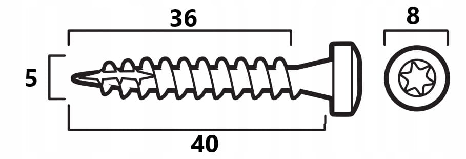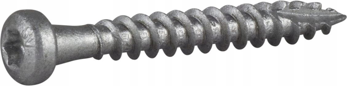 Wkręt wyprodukowany ze stali utwardzanej z powłoką antykorozyjną CorrSeal. Posiada gniazdo montażowe Torx. Nacięcie frezujące zapewnia niższy moment dokręcający w twardych podłożach drewnianych.
