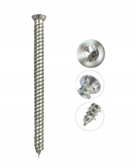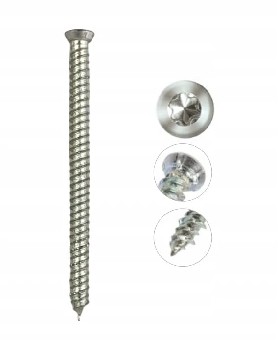 - Łeb z ryflami frezującymi zapewnia odpowiednie zagłębienie w elemencie mocowanym bez dodatkowego nawiercania