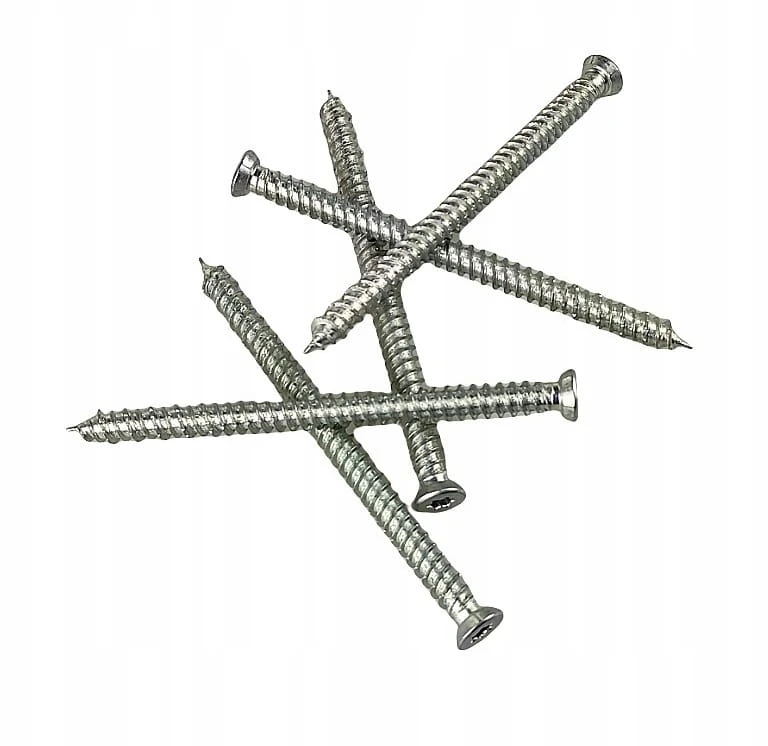 Wkręty hartowane marki Wkręt-met samogwintujące z łbem stożkowym samofrezującym z gniazdem TX TORX do montażu ościeżnic PCV lub elementów drewnianych.