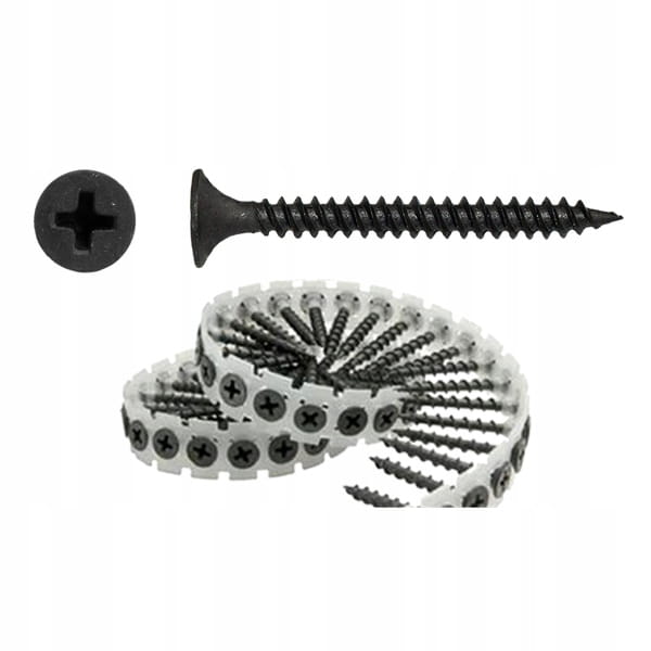 - Rodzaj: Wkręty do płyt kartonowo-gipsowych (GK) "S" na taśmie.