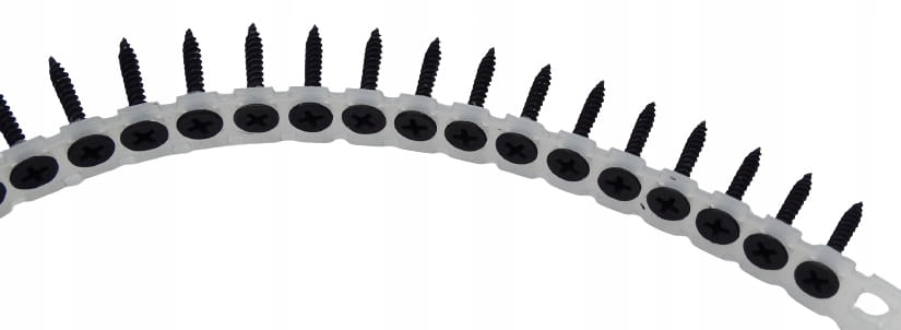 - Rodzaj: Wkręty do płyt kartonowo-gipsowych (GK) "S" na taśmie.